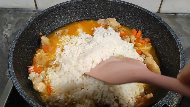 Плов из курицы с овощами и вкусным салатом.