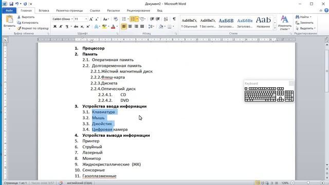 Создание многоуровневого списка в текстовом редакторе.