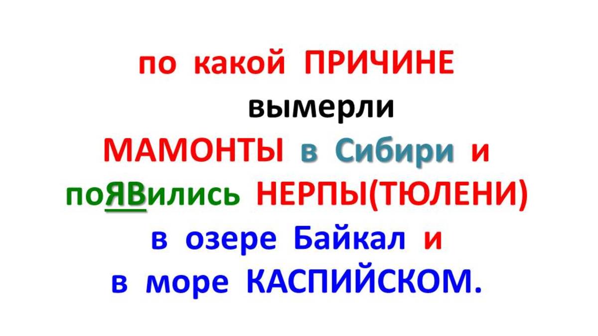 по какой ПРИЧИНЕ вымерли МАМОНТЫ в Сибири и поЯВились НЕРПЫ(ТЮЛЕНИ) в озере Байкал и в море Каспийском.