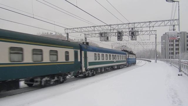 Электровоз ЧС2К-735 с поездом №149Ф Андижан-Москва платформа Электрозаводская 13.02.2019