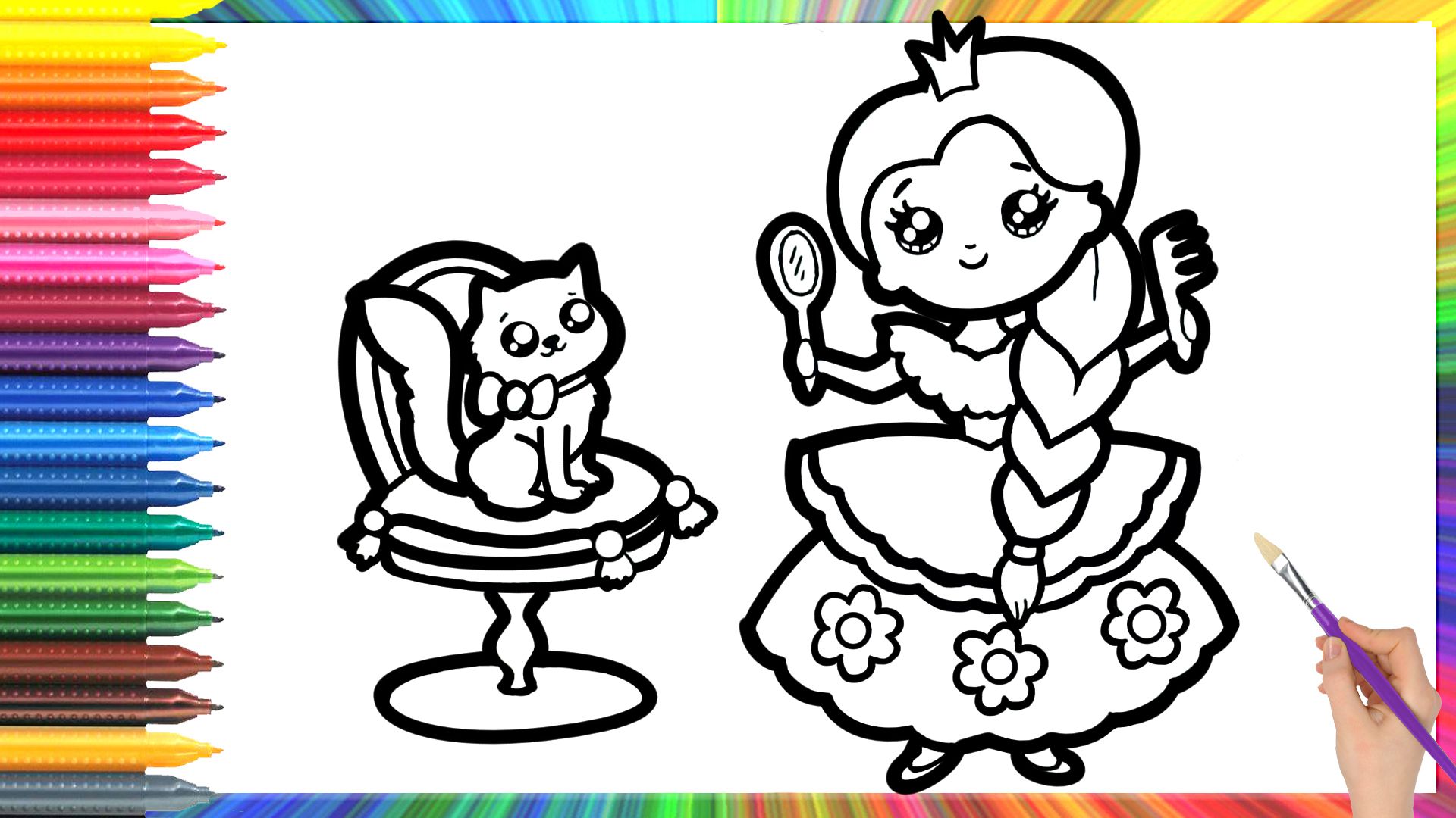 Рисунок и раскраска кота и принцессу для детей