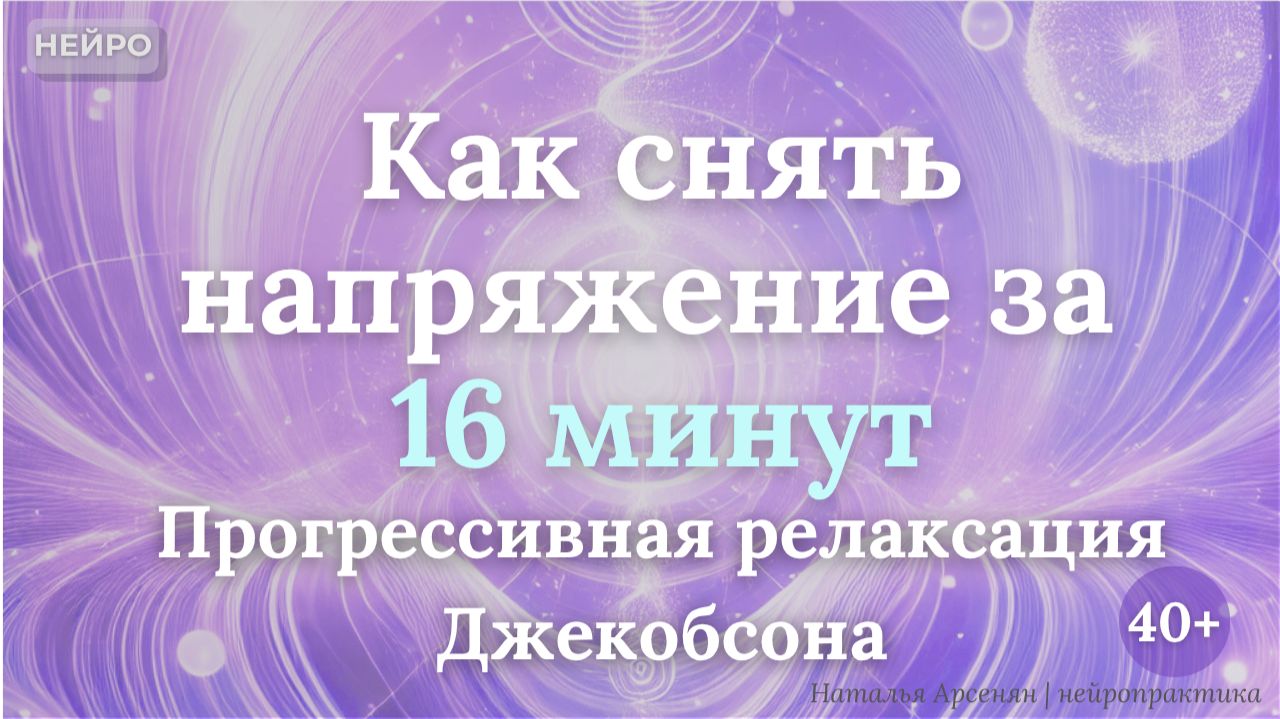 Эта 16-минутная практика помогает снять внутреннее напряжение, уменьшить тревогу и вернуть телу состояние глубокого отдыха. Метод основан на прогрессивной мышечной релаксации доктора Эдмунда Джекобсона и адаптирован для женщин 40+. 🎯 Что вы получите после практики: - расслабление мышц шеи, плеч, спины и челюсти - переключение нервной системы из стресса в восстановление - снижение уровня кортизола - замедление мыслительного потока - лёгкость в теле и ощущение внутреннего покоя 🧘 Метод Прогрессивная мышечная релаксация (метод Джекобсона), адаптированная для возраста 40+ с наименьшим напряжением мышц Попробуйте сделать её вечером — и почувствуйте, как тело вспоминает состояние настоящего отдыха. ⏱ Длительность: 16 минут Уровень: базовый, подходит для начинающих 🔬 Научная основа Метод Джекобсона доказано: → снижает кортизол и улучшает работу гиппокампа (память) → активирует парасимпатику и префронтальную кору (ясное мышление) → расслабляет челюсть и снижает тревожность → улучшает кровоток и снабжение мозга кислородом ⚠ Противопоказания - не слушать за рулём - при психических расстройствах — только после консультации со специалистом - при эпилепсии — полностью противопоказано - при любом дискомфорте откройте глаза и остановите практику 📂 Плейлист этого видео: «Расслабление и сон | Нейропрактики» https://rutube.ru/plst/1300559 ✍️ Автор: Наталья Арсенян — нейрокоуч, клинический психолог, автор нейропрактик для восстановления нервной системы. Ассоциированный член Союза превентивной, регенеративной и трансляционной медицины (ПРЕВЕНТМЕД). Работаю с женщинами 40+, которые хотят снизить тревожность, укрепить нервную систему и вернуть устойчивость. Социальные сети Telegram-канал: https://t.me/n_arsenian VK: https://vk.com/club80384400 Контакты Email: info@arsenian.ru Telegram для связи: https://t.me/Natalia_Arsenian Атрибуции контента Video Content Credits All footage used under Pixabay Content License: Dust Glitter Particles Space (ID: 138556) Трек used under Pixabay Content License Meditationspiritual Relax At The Waterlily Pond Meditation Relaxation Positive Sleep Music (ID: 140640) Хештеги #нейропрактика #релаксация #расслабление #стресс #восстановлениемозга #сон40plus #женщины40plus #НатальяАрсенян
