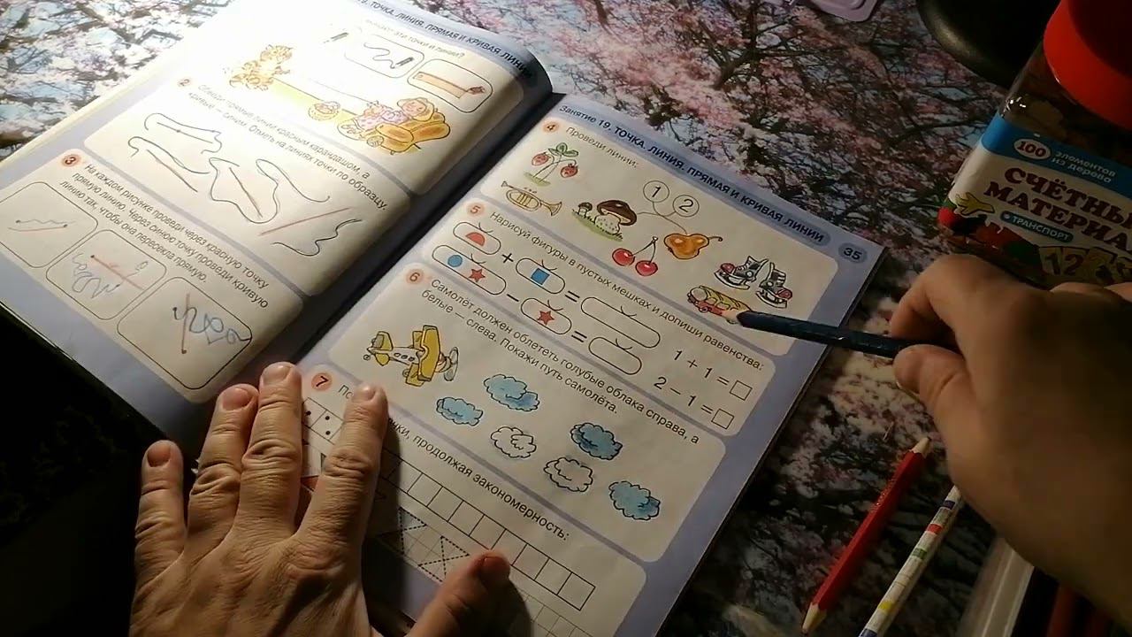 Занимаемся по пособию для дошкольников Л. Г. Петерсон, Н. П. Холина. Математика для дошкольников. 5-6 лет. 19 занятие. РАЗ - ступенька, ДВА - ступенька. Часть 1. Точка. Линия. Прямая и кривая линии.