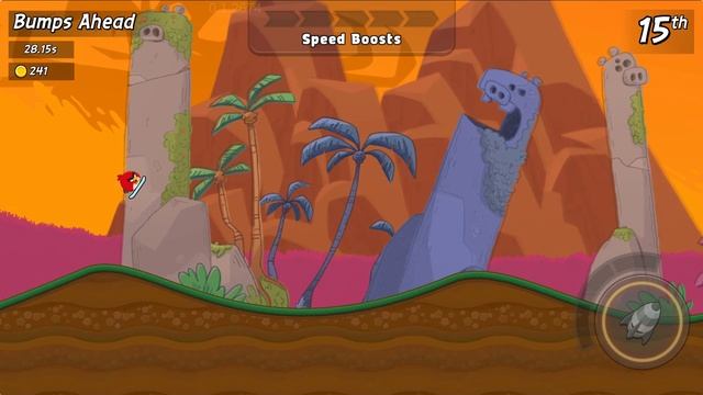 angry birds racing - новые андроид игры Angry Birds Racing основана на мультиплеерных «заездах» с другими игроками, только вместо 3D-гонок как в Angry Birds Go, игроки будут выстреливать из рогатки разноцветных птиц и совершать трюки на 2D-локациях, словно бы это Angry Birds. Во время заездов в Angry Birds Racing нет энергичной музыки и кучи спецэффектов, из-за этого приходится концентрироваться на трюках и прокачке персонажей.