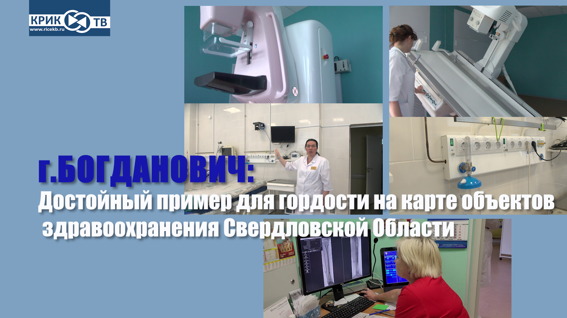 Увидите сегодня в выпуске: ультрасовременные и высокотехнологичные медицинские услуги и достойная, комфортная, доступная здоровая жизнь горожан или начало нашего журналистского фильма-обзора. Мы с нашей съёмочной группой вновь побывали и проинспектировали объекты медицинских учреждений в городе Богданович СО. Изменений очень много, и все они очень положительные. Стоит наверное, напомнить, что в целом, в Богадновичском городском округе уделяется пристальное внимание системе здравоохранения, развивается и укрепляется материальная база здравоохранения. Идёт масштабная реконструкция, восстановление и ремонт. Кабинеты и палаты пополняются всё новым оборудованием, позволяющим медицинскому персоналу успешно лечить пациентов. Реализуется Приоритетный Национальный проект «Здоровье», в сельских населенных пунктах открыто 5 общих врачебных практик, приобретается современное диагностическое оборудование, проводится дополнительная диспансеризация работающего населения. Администрацией городского округа Богданович совместно с «Центральной районной больницей» реализуются все Муниципальные социальные программы, направленные на охрану здоровья населения, улучшение медицинского обслуживания и многое, многое другое. Вполне можно заявить о медицине нового поколения. И всё это благодаря общим плодотворным усилиям, понятно каких уровней. Но всё же, среди персон, отдельным блоком стоит внести имена и фамилии: это Олег Нейфельд - Глава городского округа , Елена Вдовина - Главный врач «Богдановичской ЦРБ», Председателя ЗАКСО Людмила Бабушкина и многих, многих других. Ну а мы, не будем тянуть, а будем постепенно и подробно знакомить Вас от сюжета к сюжету, наши зрители, с объектами медицинского назначения Богдановичского района. Всем взять во внимание, и особенно равняться на пример эффективного и плодотворного управления, слаженной цепочке взаимодействия, в результате которых мы видим достойные примеры и поводы для гордости на карте медицинских объектов Свердловской Области. Подробности далее в выпуске.