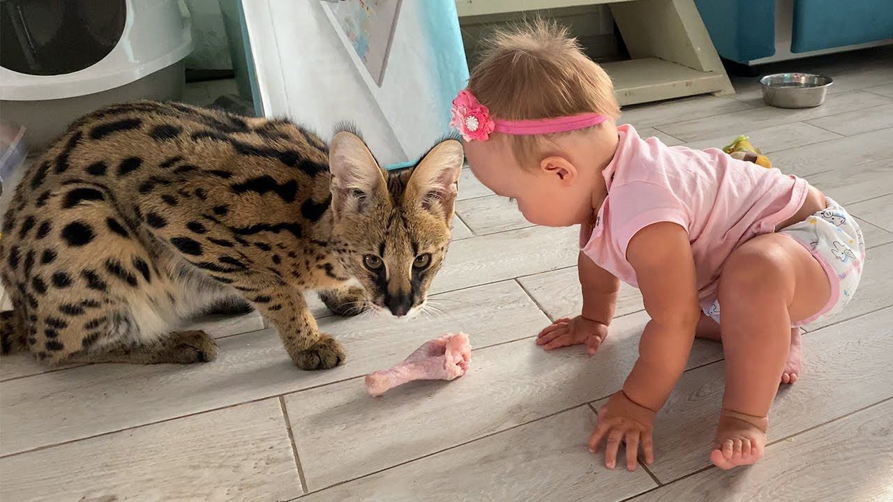 ДИКИЙ КОТ ДЕЛИТСЯ ЕДОЙ С РЕБЁНКОМ / Бесконтактная охота сервала