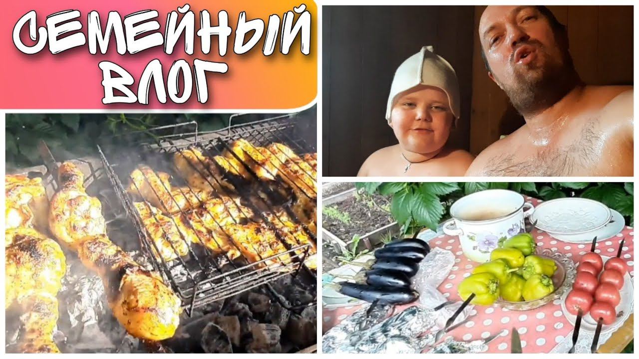 Влог из бани на даче//готовим шашлык из курицы и свинины//семейный канал/моя семья/family VLOG ❤