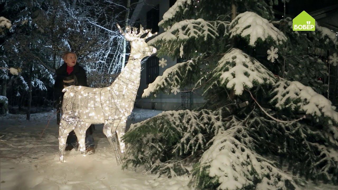 Собираем туловище и ноги, крепим их между собой и монтируем гирлянду. Такой величавый олень, несомненно, украсит ваш загородный участок!