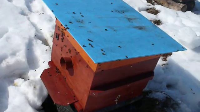 Выставили пчёл - первый облёт. Завершение зимовки при постоянной плюсовой температуре.