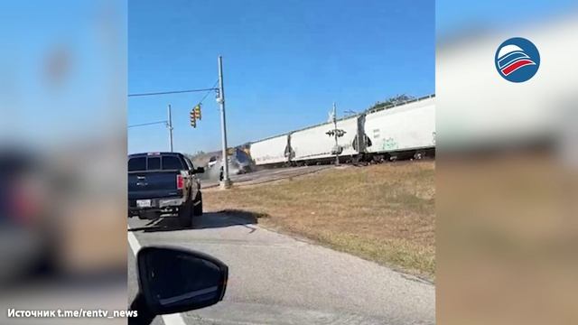 Столкновение автовоза с поездом в техасском городе Шерц попало на видео