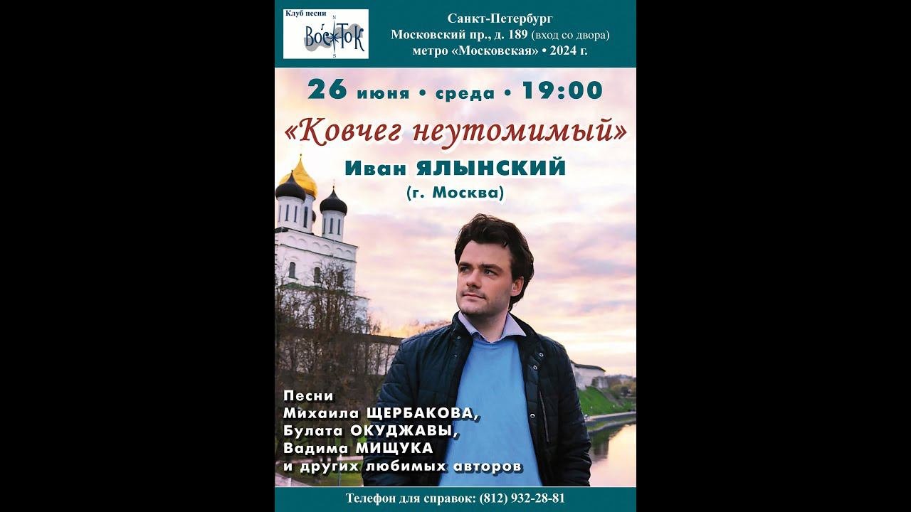 Иван Ялынский (г. Москва). «Ковчег неутомимый». Клуб песни «Восток». 26 июня 2024 г. Видеозапись - Алла Левитан. Запись звука - Герман Колосов. Афиша - Елена Адрианова. Санкт-Петербург, Московский пр., д. 189.