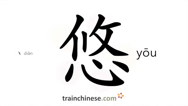 悠 (yōu) remote in time or space; leisurely; long or drawn out; pensive; worried; to swing