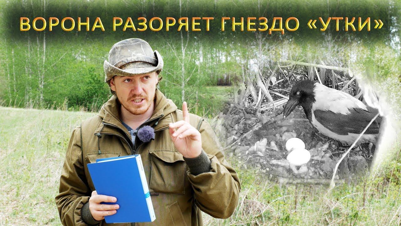 Ворона разоряет подставное утиное гнездо