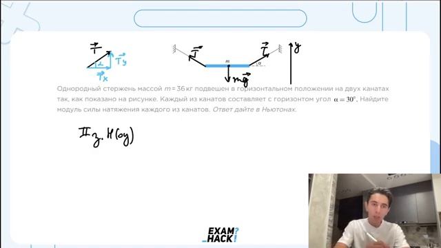 Однородный стержень массой m 36 кг подвешен в горизонтальном положении на двух канатах так- 23160