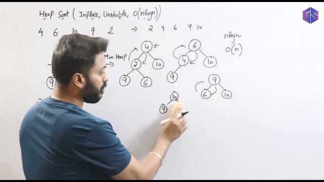 ?Subscribe to our new channel:https://www.youtube.com/@varunainashots ?Links for DAA Notes: ?File-1: https://rb.gy/2byrg ??Contributed by: Junaid Gazi ?File-2: https://rb.gy/gibu5 ??Contributed by: Mannu Garg Heap sort is a comparison-based sorting technique based on Binary Heap data structure. It is similar to selection sort where we first find the minimum element and place the minimum element at the beginning. We repeat the same process for the remaining elements. ►Heap Tree: https://youtu.be/uuot9ItgTEI ►Build Heap: https://youtu.be/8noP3YjjJCM 0:00 - Heap sort 7:13 - Time Complexity 8:32 - Inplace, Unstable ►Design and Analysis of algorithms (DAA) (Complete Playlist): https://www.youtube.com/playlist?list=PLxCzCOWd7aiHcmS4i14bI0VrMbZTUvlTa Other subject-wise playlist Links: -------------------------------------------------------------------------------------------------------------------------------------- ► Operating System : https://www.youtube.com/playlist?list=PLxCzCOWd7aiGz9donHRrE9I3Mwn6XdP8p ►Database Management System: https://www.youtube.com/playlist?list=PLxCzCOWd7aiFAN6I8CuViBuCdJgiOkT2Y ► Theory of Computation https://www.youtube.com/playlist?list=PLxCzCOWd7aiFM9Lj5G9G_76adtyb4ef7i ►Artificial Intelligence: https://www.youtube.com/playlist?list=PLxCzCOWd7aiHGhOHV-nwb0HR5US5GFKFI ►Computer Networks (Complete Playlist): https://www.youtube.com/playlist?list=PLxCzCOWd7aiGFBD2-2joCpWOLUrDLvVV_ ►Computer Architecture (Complete Playlist): https://www.youtube.com/playlist?list=PLxCzCOWd7aiHMonh3G6QNKq53C6oNXGrX ►Structured Query Language (SQL): https://www.youtube.com/playlist?list=PLxCzCOWd7aiHqU4HKL7-SITyuSIcD93id ►Discrete Mathematics: https://www.youtube.com/playlist?list=PLxCzCOWd7aiH2wwES9vPWsEL6ipTaUSl3 ►Compiler Design: https://www.youtube.com/playlist?list=PLxCzCOWd7aiEKtKSIHYusizkESC42diyc ►Number System: https://www.youtube.com/playlist?list=PLxCzCOWd7aiFOet6KEEqDff1aXEGLdUzn ►Cloud Computing & BIG Data: https://www.youtube.com/playlist?list=PLxCzCOWd7aiHRHVUtR-O52MsrdUSrzuy4 ►Software Engineering: https://www.youtube.com/playlist?list=PLxCzCOWd7aiEed7SKZBnC6ypFDWYLRvB2 ►Data Structure: https://www.youtube.com/playlist?list=PLxCzCOWd7aiEwaANNt3OqJPVIxwp2ebiT ►Graph Theory: https://www.youtube.com/playlist?list=PLxCzCOWd7aiG0M5FqjyoqB20Edk0tyzVt ►Programming in C: https://www.youtube.com/playlist?list=PLxCzCOWd7aiGmiGl_DOuRMJYG8tOVuapB ►Digital Logic: https://www.youtube.com/playlist?list=PLxCzCOWd7aiGmXg4NoX6R31AsC5LeCPHe --------------------------------------------------------------------------------------------------------------------------------------- Our social media Links: ► Subscribe to us on YouTube: https://www.youtube.com/gatesmashers ►Subscribe to our new channel: https://www.youtube.com/@varunainashots ► Like our page on Facebook: https://www.facebook.com/gatesmashers ► Follow us on Instagram: https://www.instagram.com/gate.smashers ► Follow us on Instagram: https://www.instagram.com/varunainashots ► Follow us on Telegram: https://t.me/gatesmashersofficial ► Follow us on Threads: https://www.threads.net/@gate.smashers -------------------------------------------------------------------------------------------------------------------------------------- ►For Any Query, Suggestion or notes contribution: Email us at: gatesmashers2018@gmail.com