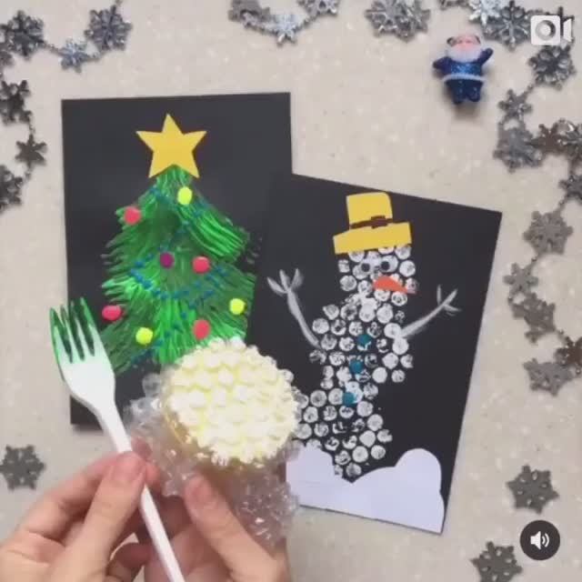 Оригинальные новогодние рисунки красками и "пупыркой"