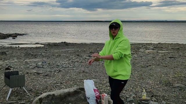С друзьями на берегу Оби жарим мясо