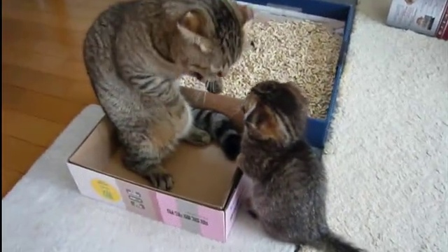 кошка играет с котенком