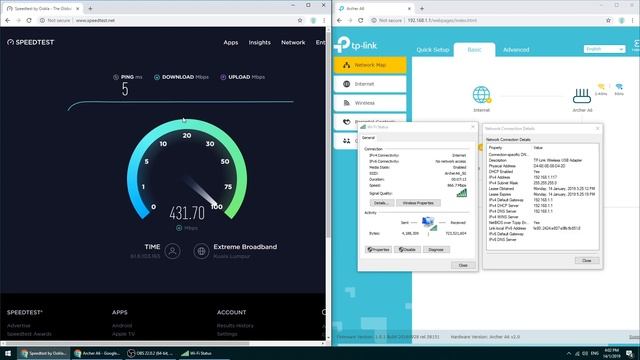 We are testing the maximum WiFi speed of the Archer A6 on a 1Gbit Internet connection and the Archer T9UH. Wireless speed is subjected to signal strength and interference.