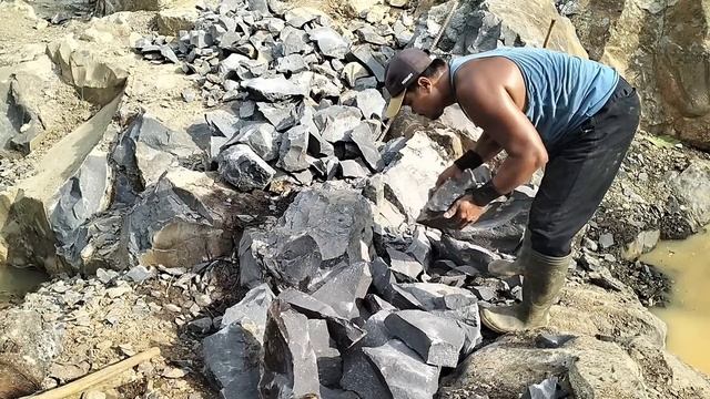 Строительство, самый сильный шахтёр в одиночку разбивает камни