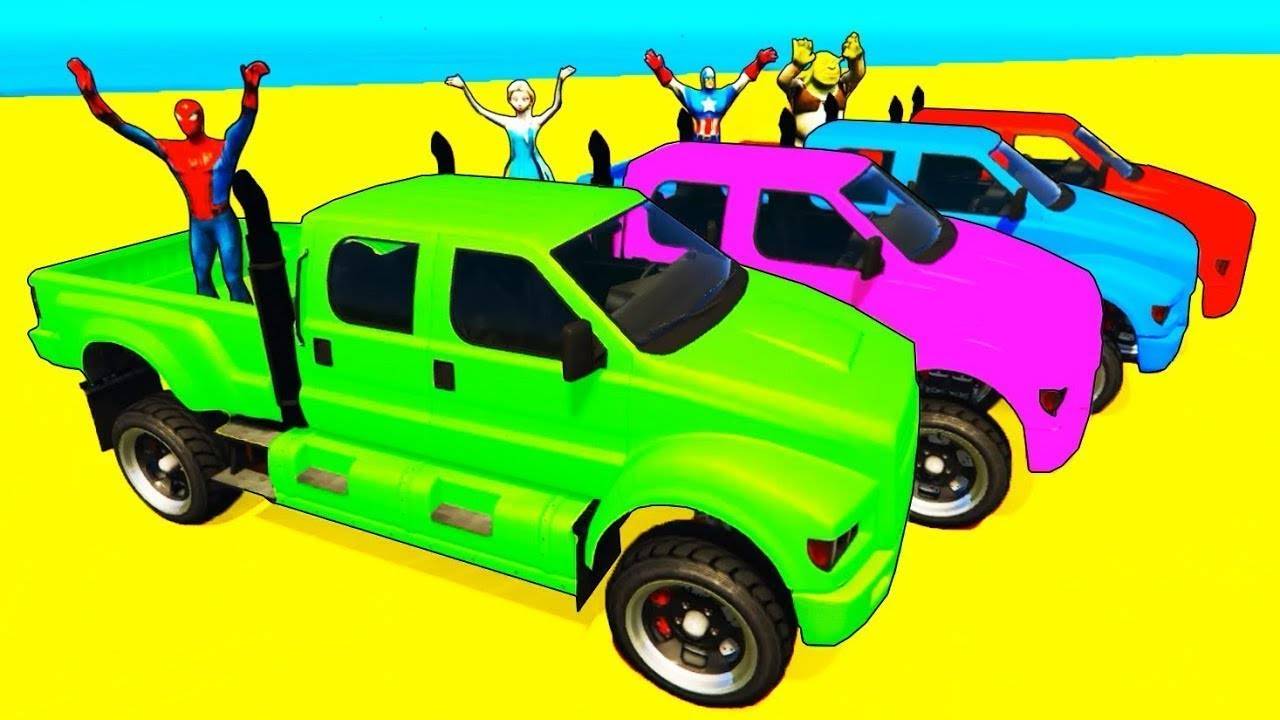 Мультики для детей про машины Цветные гоночные джипы и самолеты для Человека-паука и Супергероев
