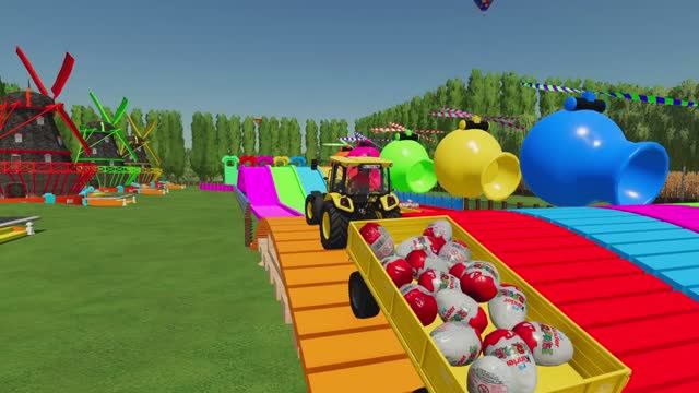 ТРАКТОР ПЕРЕВОЗИТ КИНДЕР СЮРПРИЗЫ. КРАСОЧНЫЙ МУЛЬТИК ДЛЯ МАЛЫШЕЙ.