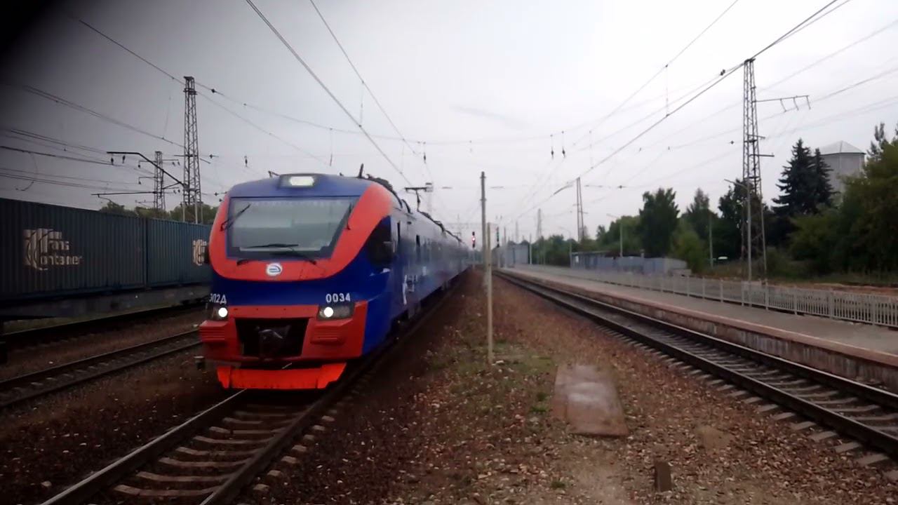 ЭП2Д-0034 "РЭКС" с приветливой бригадой сообщением Москва-Можайск прибывает на ст Кубинка-1.