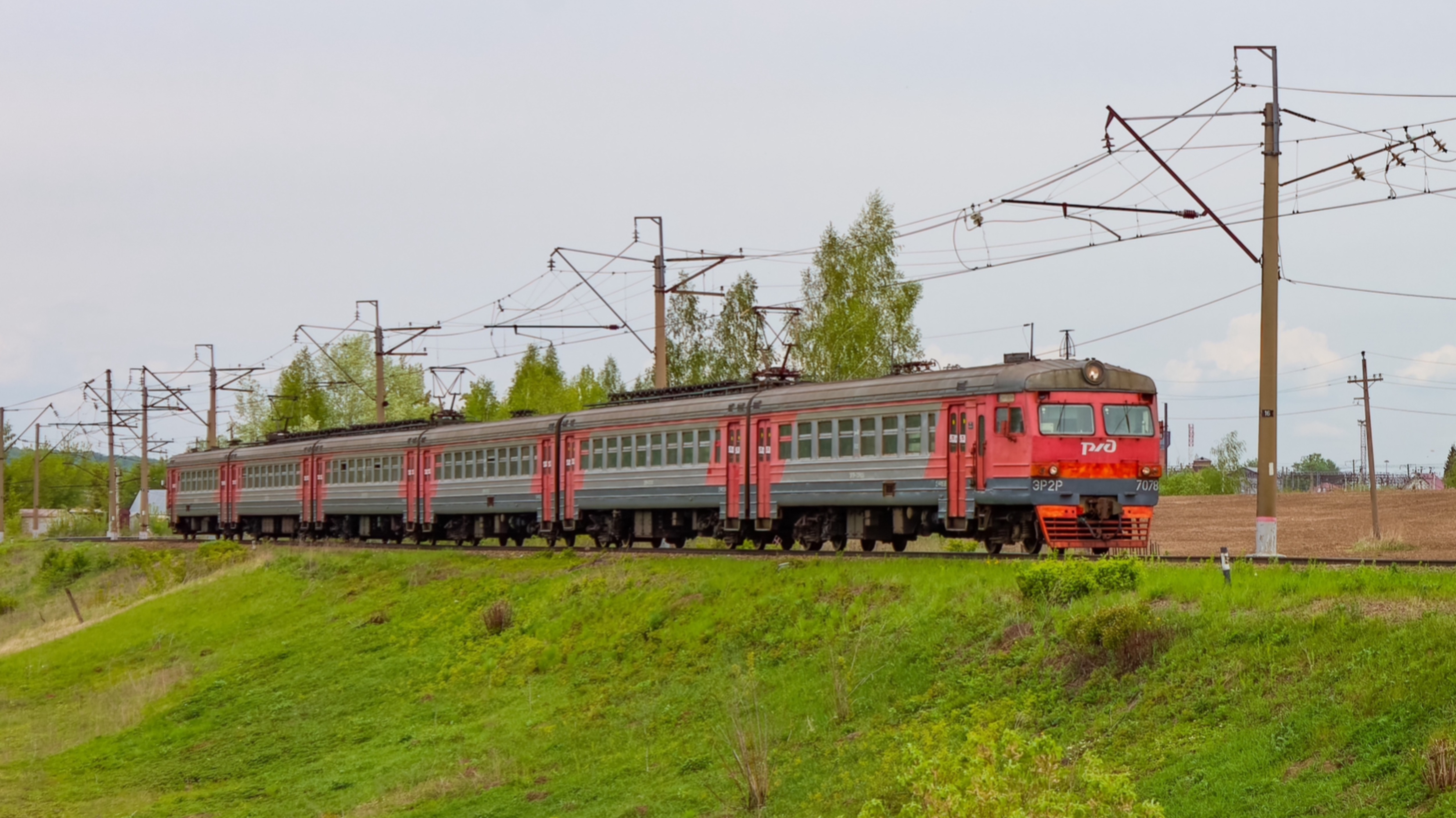ЭР2Р-7078 с поездом Узуново–Рязань-1 следует по перегону Узуново–разъезд 12 км