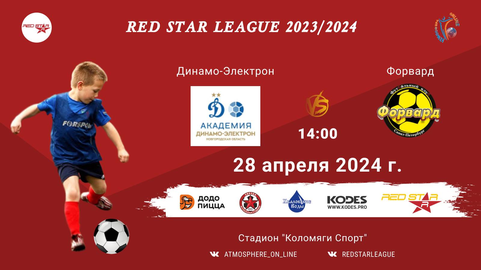 Red Star League среди команд 2012-2013 г.р. (U11-U12) 28 АПРЕЛЯ 2024 САНКТ-ПЕТЕРБУРГ, Стадион "Коломяги-Спорт" ФК "Динамо-Электрон" - ФК "Форвард"/Red Star League, 28-04-2024 14:00