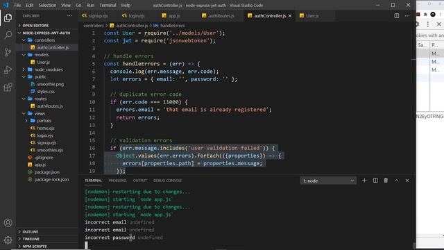 Hey gang, in this Node auth tutorial we'll finish up the log-in process & handle errors. ???? JOIN THE GANG - https://www.youtube.com/channel/UCW5YeuERMmlnqo4oq8vwUpg/join ---------------------------------------- ?? ?? My Udemy Courses: + Modern JavaScript - https://www.thenetninja.co.uk/udemy/modern-javascript + Vue JS & Firebase - http://www.thenetninja.co.uk/udemy/vue-and-firebase + D3.js & Firebase - https://www.thenetninja.co.uk/udemy/d3-and-firebase ?? ?? Course Files: + https://github.com/iamshaunjp/node-express-jwt-auth ?? ?? Other Related Free Courses & Links: + Node.js Cash Course - https://www.youtube.com/watch?v=zb3Qk8SG5Ms&list=PL4cUxeGkcC9jsz4LDYc6kv3ymONOKxwBU + Get VS Code - https://code.visualstudio.com/ + JWT Debugger - https://jwt.io/ ?? ?? Social Links: Facebook - https://www.facebook.com/thenetninjauk Twitter - https://twitter.com/thenetninjauk Instagram - https://www.instagram.com/thenetninja/