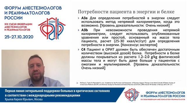 Первая линия энтеральной поддержки в ОРИТ Крылов К.Ю. ФАРР 2020