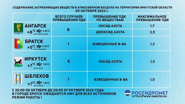 [06.10.2022] Мониторинг состояния атмосферного воздуха 05.10.2022
