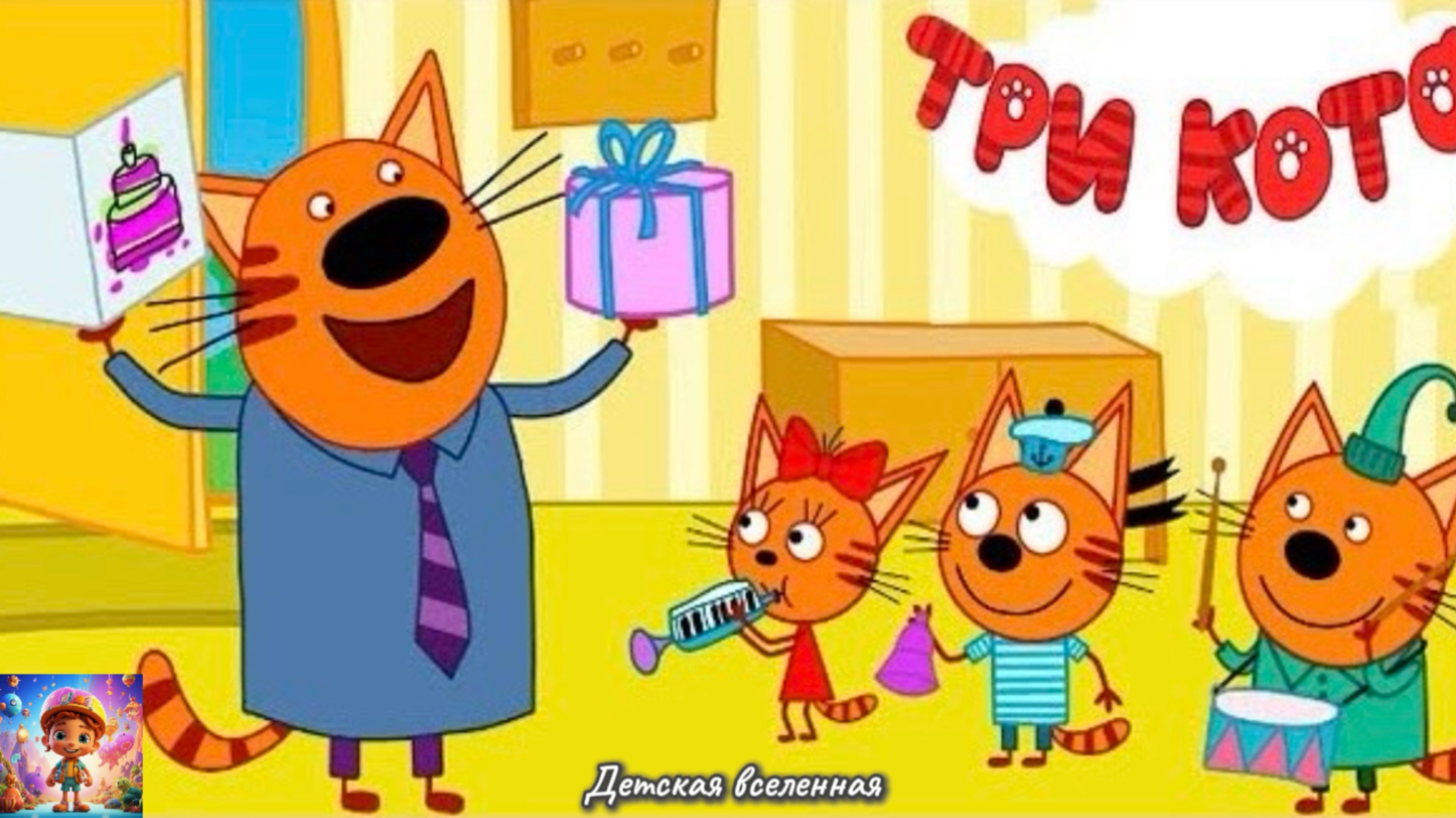 ТРИ КОТА / МУЗЫКАЛЬНАЯ ОТКРЫТКА ДЛЯ ПАПЫ / ПОДАРОК ОТ КОТИКОВ / ДЕТСКАЯ ВСЕЛЕННАЯ / 28