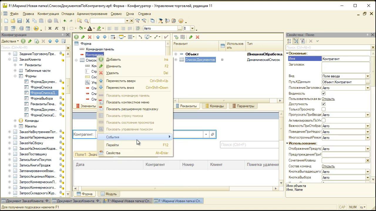 Программирование в УТ 11.4. Взаимодействие с динамическими списками.