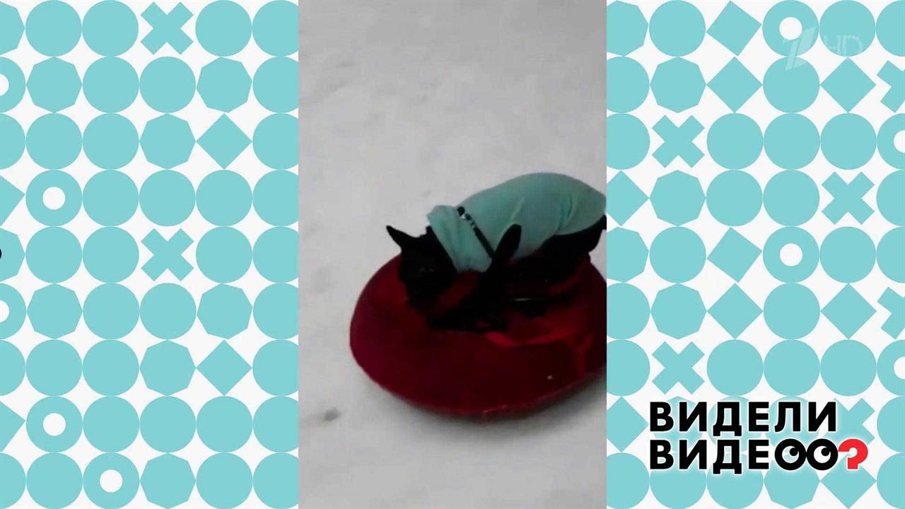 Французский бульдог Брюс обожает кататься с горы на ватрушке.  Этот видеоролик зрители прислали на почту "Видели видео?" У вас есть интересное видео? Присылайте нам: videli-video@1tv.ru