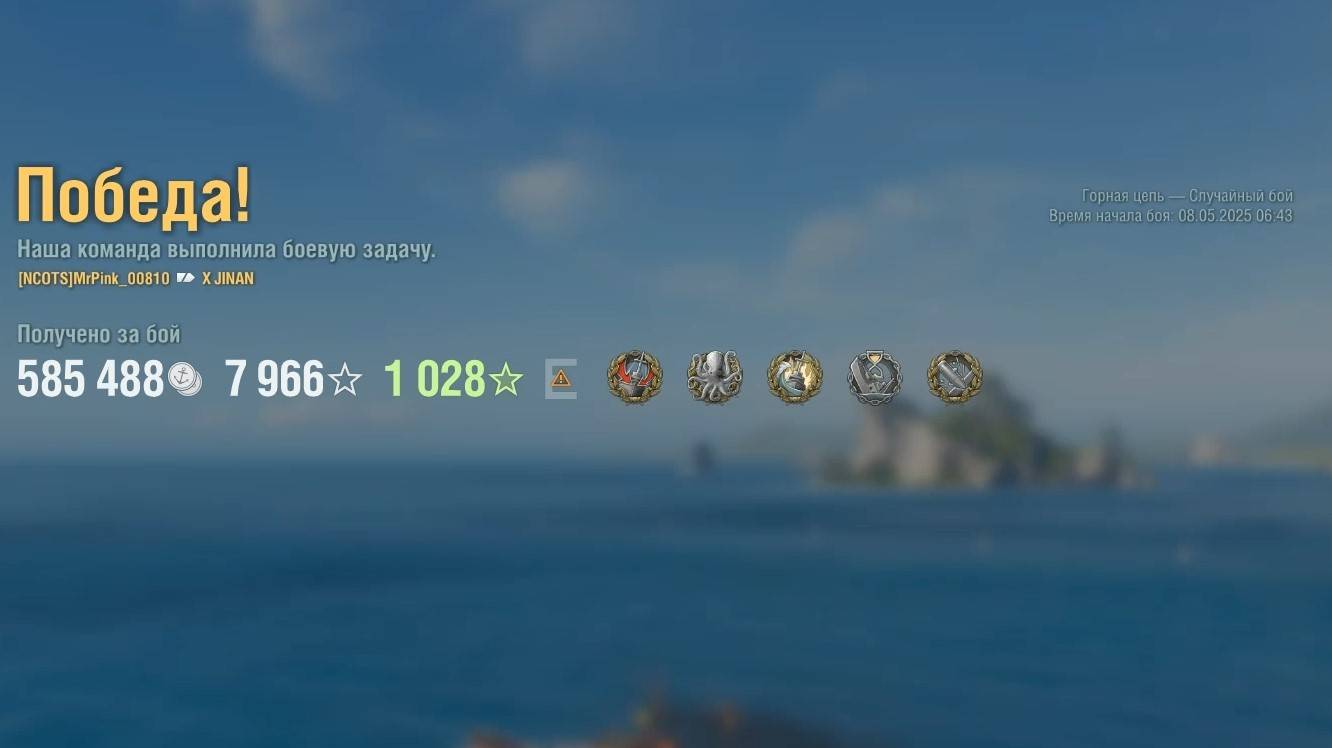 Крейсер Jinan: +330к урона 5 фрагов на карте Горная цепь - World of Warships