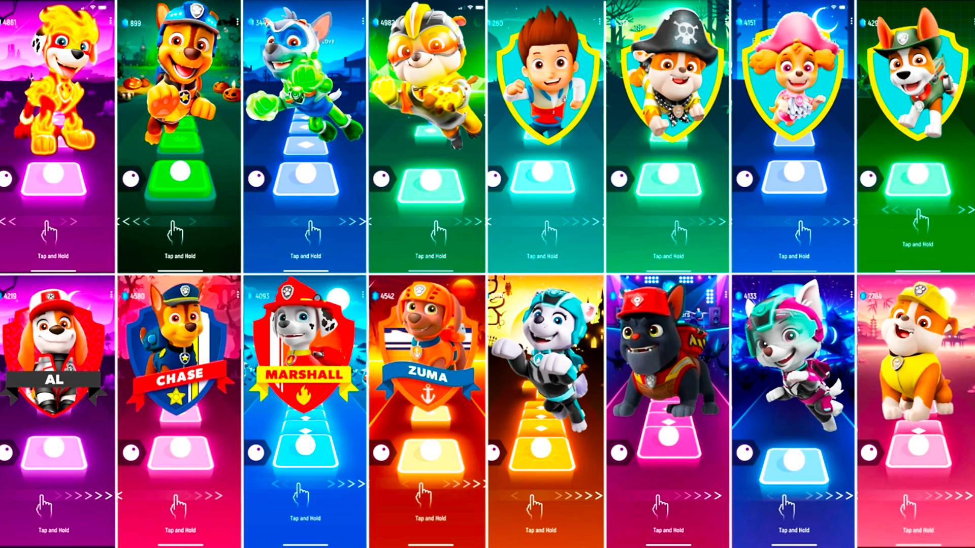 Мультики для Детей Щенячий Патруль Tiles Hop - Маршалл, Гончик, Рокки, Крепыш, Райдер