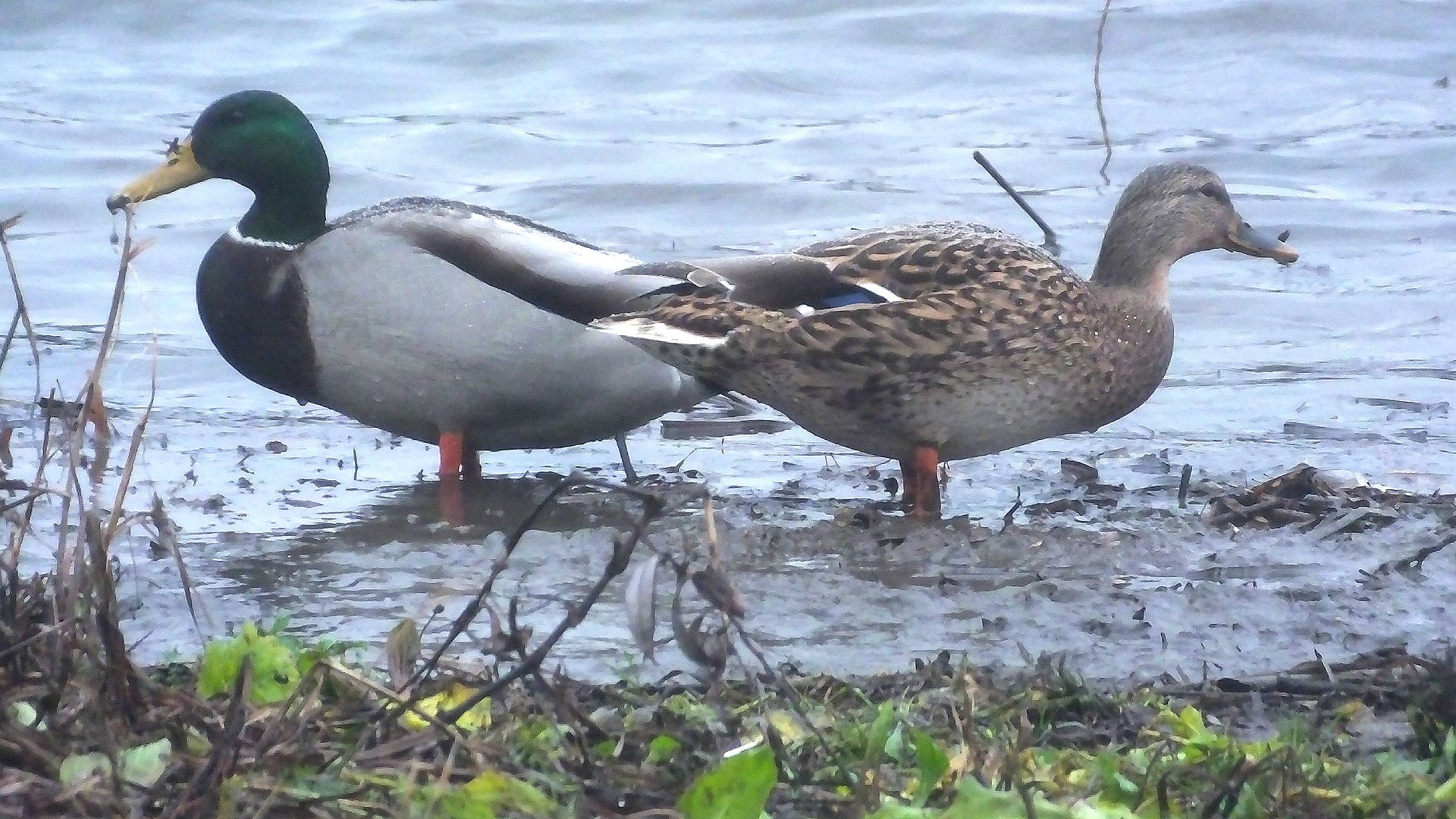Иногда хожу на Оку в свои укрытия. Сейчас у меня их там 2. Это территория утки кряквы, а я жду прилетевших на зимовку гоголей, хохлатую чернеть, лысуху, большого крохаля, чомгу. В конце ролика среди уток плавает самка гоголя.