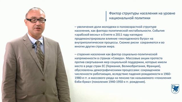 Лекция: Политическая демография: Структура населения как фактор политики. Лектор: Сакаев Василь Тимерьянович - кандидат исторических наук, доцент кафедры международных отношений, мировой политики и дипломатии Института международных отношений Казанского федерального университета