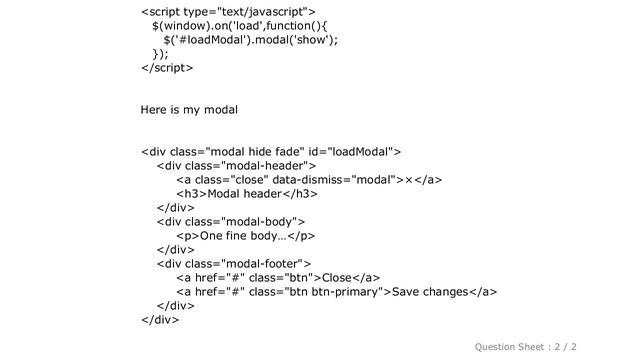 HTML : Uncaught TypeError: $(...).modal is not a function [ Beautify Your Computer : https://www.hows.tech/p/recommended.html ] HTML : Uncaught TypeError: $(...).modal is not a function Note: The information provided in this video is as it is with no modifications. Thanks to many people who made this project happen. Disclaimer: All information is provided as it is with no warranty of any kind. Content is licensed under CC BY SA 2.5 and CC BY SA 3.0. Question / answer owners are mentioned in the video. Trademarks are property of respective owners and stackexchange. Information credits to stackoverflow, stackexchange network and user contributions. If there any issues, contact us on - htfyc dot hows dot tech #HTML:UncaughtTypeError:$()modalisnotafunction #HTML #: #Uncaught #TypeError: #$(...).modal #is #not #a #function Guide : [ HTML : Uncaught TypeError: $(...).modal is not a function ]