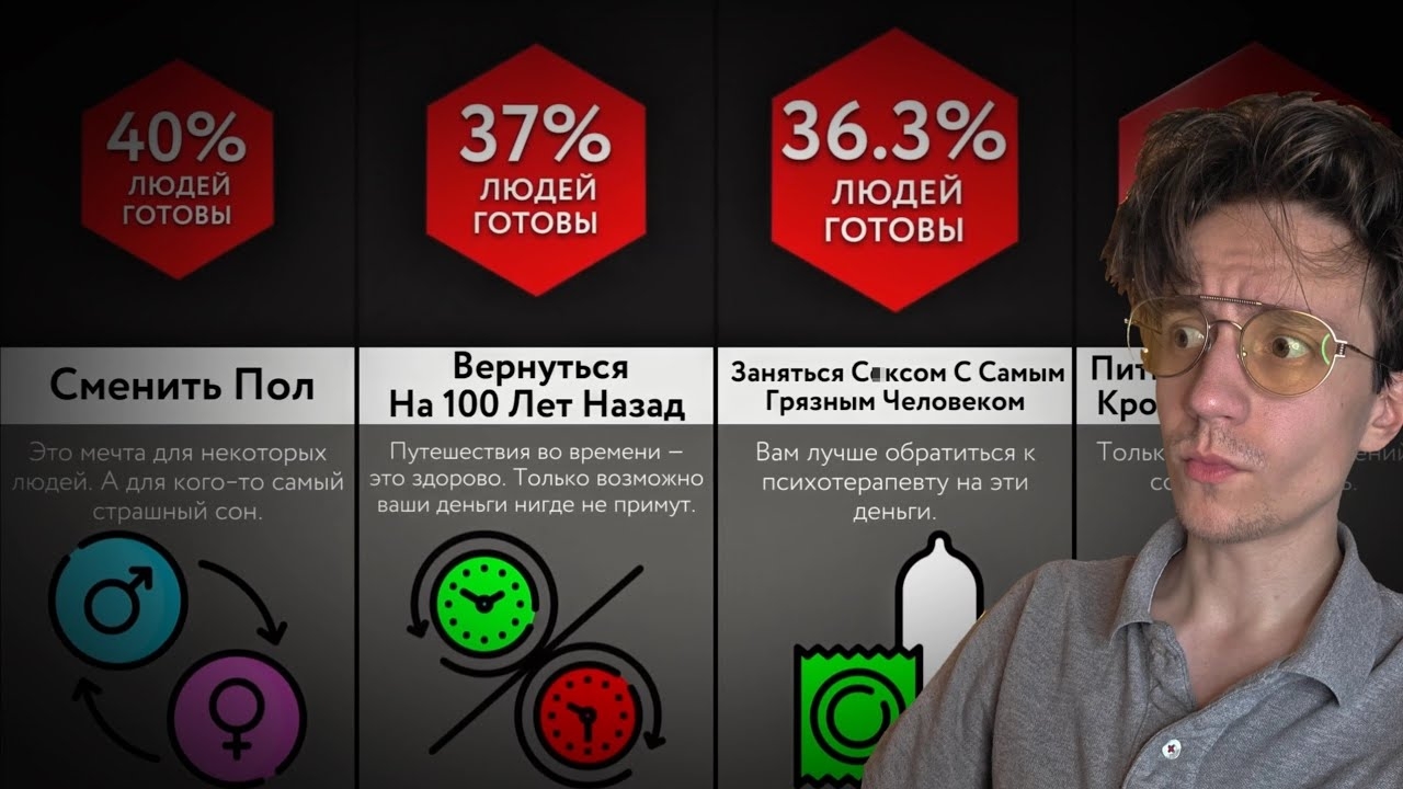Согласны на ЭТО за 1 МИЛЛИАРД долларов? Посмотрим это видео-сравнение, что люди согласились бы сделать за 1 миллиард долларов! Вы знали, что 40% согласны работать в Макдональдс до старости? А что 22% готовы уронить мыло в душе? Посмотрите это видео, чтобы узнать больше! Новости. Реакция от Детальки. 🔴 Мой телеграм канал с новостями: https://t.me/deta1ka ➡️ Оригинальное видео: https://youtu.be/LJbMi_L-isY?si=XMl3x9gntKNV4cG3 ➡️ Купить звезды или премиум телеграм: https://t.me/TapRefBot?start=l Связь со мной: https://t.me/msm031 ⚠️ Уважаемые авторы оригинального контента! Если вам что-то не понравилось в моей реакции на ваше видео, или вы хотите, чтобы ролик был скрыт/удалён — пожалуйста, напишите мне. Я всегда готов пойти навстречу.