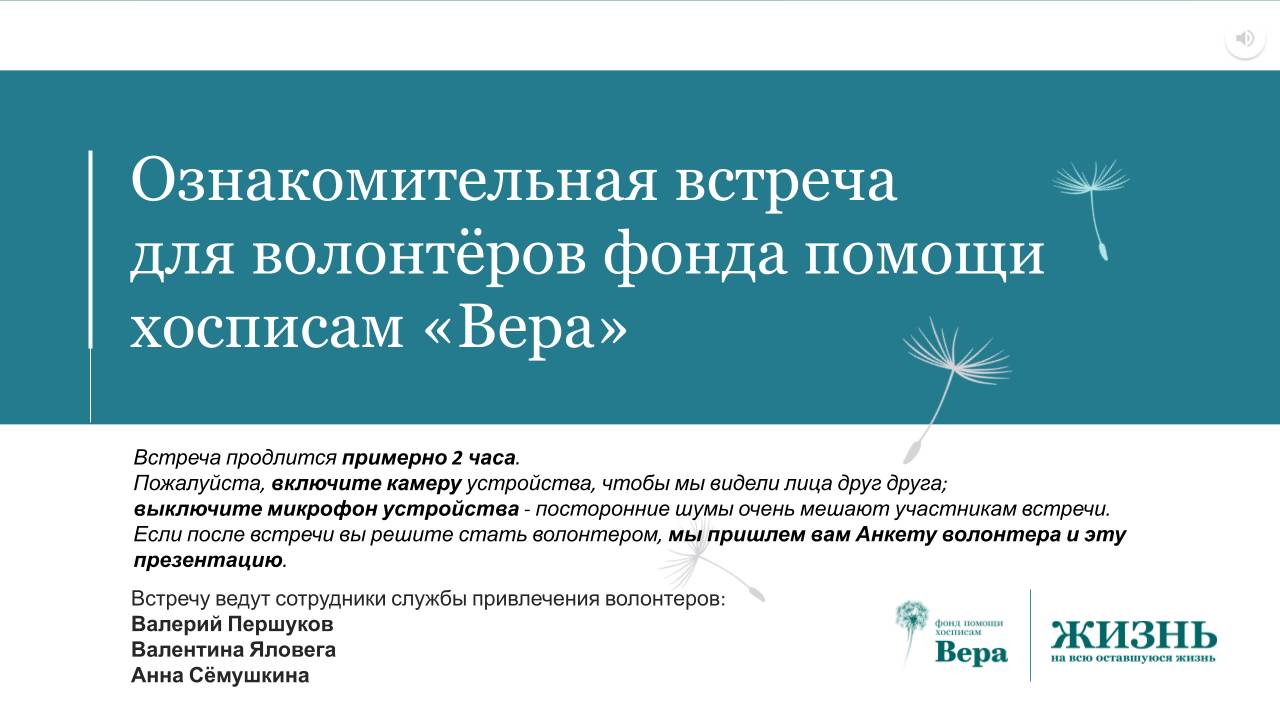 Запись ознакомительной встречи для волонтеров фонда помощи хосписам "Вера"