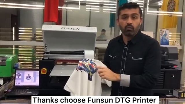 FUNSUN-12 Years DTG Printer Manufacture : 1:A3 size, 30*50cm max printing 2:CMYK White 5 color 3:Can print both white and dark color garment 4:Can print all materials garment ,tshirt 5:Free ink, contact us now WhatsApp:+86 13918647869 levis@funsunsign.com www.funsundtg.com