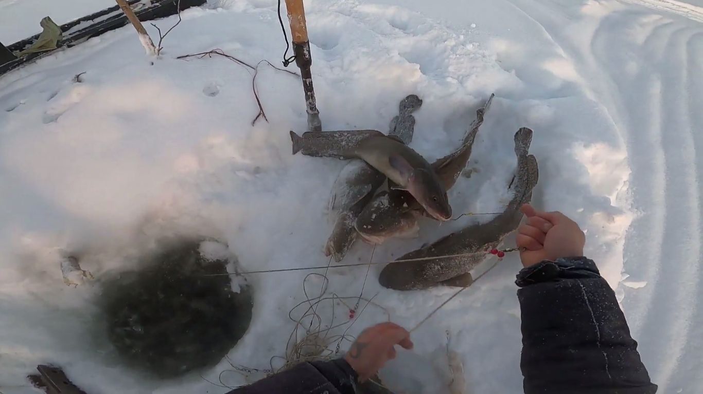 Рыбалка на налима. Проверка перемётов в мороз. 41