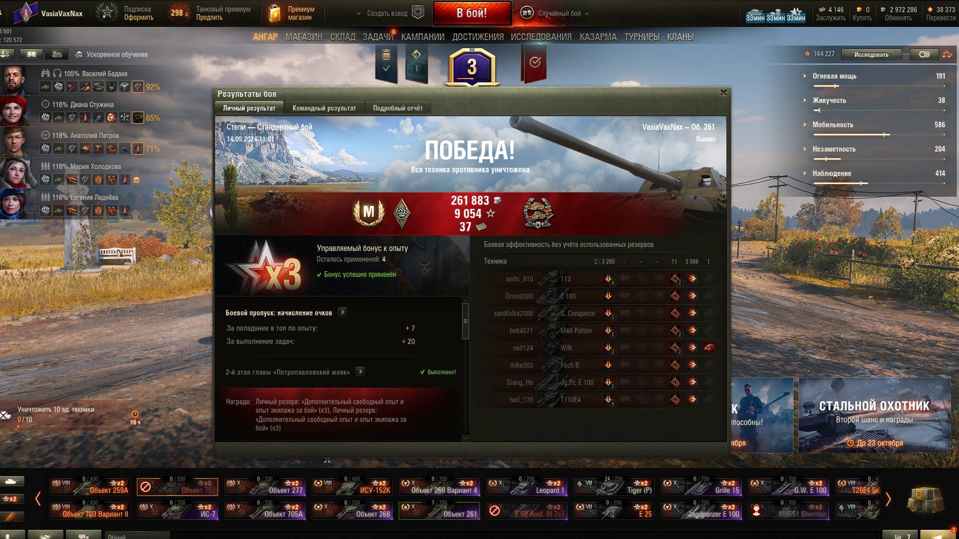 World of Tanks 2024.09.14 -Объект 261( мастер 6.8 к общего урона)
