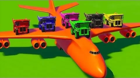 Огромные красочные грузовики на самом большом воздушном транспорте Учат цвета для детей