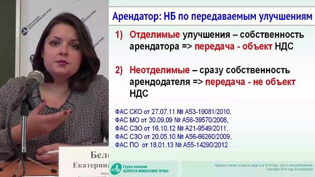 Фрагмент семинара Е.Н.Белоусовой «Аренда и лизинг», 9 декабря 2014 г.