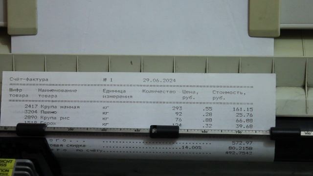 Печать счёта-фактуры из SC4 на матричном принтере Star ZA-250EE