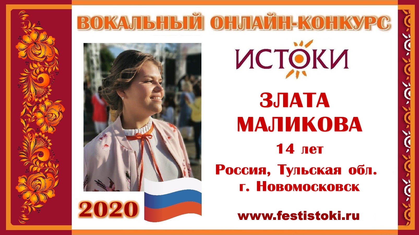 ЗЛАТА МАЛИКОВА, 14 лет (Россия, Тульская область, г. Новомосковск). "У колодезя вода"