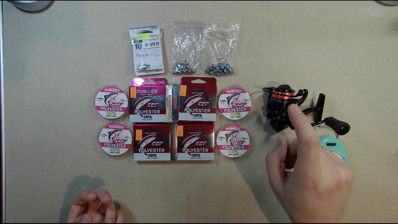 "Это я удачно зашёл!" - подумал я и скупил половину магазина. ;) 30 "чебурашек" (3 и 4гр), 50 крючков Owner и 400 метров полиэстера = 1150р. PS. Очень хотелось купить и попробовать эту новую леску от Дунаева! Надеюсь, что оно того стоит.